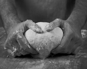 במיקסר: ללוש כ-7 דקות, עד לפיתוח מלא של הגלוטן בבצק. בשלב הזה הבצק אמור להיות חזק, ניתן למתיחה ולא נקרע בקלות.